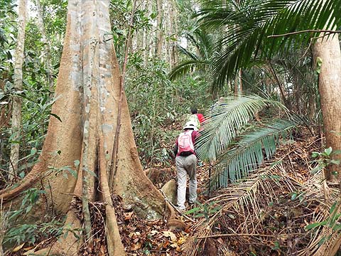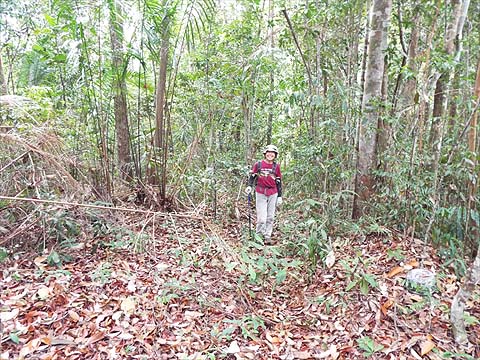 There were two trails available, we chose the left one which looked better used. We'd done several lesser paths on the (western) Pantai Mas side of the National Park and surely this one with a shorter climb would hold no terrors?