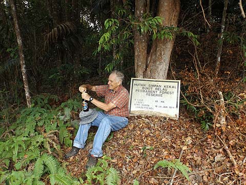 We returned to the main trail and continued up to a point where rubber had recently been planted. It was actually a lot easier than the picture suggests and when we got to the top, we had reached our furthest point for the day. Ahead was Bukit Relau Permanent Forest Reserve, the notice indicates the 69 Ha reserve was established in 1911. For an alternative route to this point which is more challenging, please read Peter van der Lans' posting (sorry http://www.bicycle-adventures.com/nibbinda-ridge-path.html is now a broken link) which also covers the route onwards to the main ridge. Apparently parts of it are in excellent condition, others rather less so. It is probably between 500m and 1km through to the south end of Nanshan, it wasn't for us having read the report!