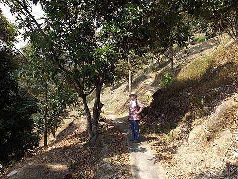 We returned to the junction mentioned above and turned left along a path which followed the contour. To our right there were excellent views across to the 'Temple with the View' and the house with the Sacred Heart lady can be picked out just to the right of centre. The cleared area poking out above the near trees is just above the valley floor at the point where the 'main road' starts its climb with a zig-zag. We find this kind of sighting extremely helpful in working out the courses followed on our walks and also in suggesting future possible routes.