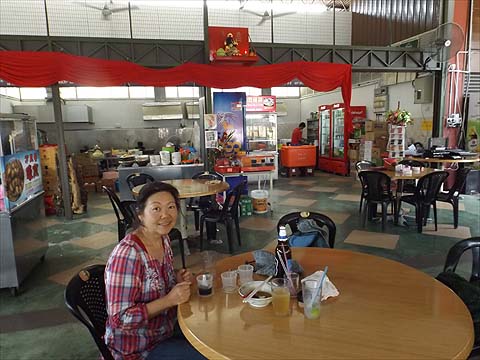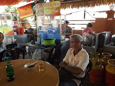 Balik Pulau can be very warm and sticky in the coffee shops so we really weren't in too much of a hurry as we sauntered down. Just after we got to the main road, a motorcyclist stopped and offered us a lift to town. He was clearly a 'hill resident' who recognised us as regular visitors. We never turn these down, that road is a pain at the end of the day, but it did seem that we were about to get an extra half hour in the sauna. However, it tuned out he was off to share a late afternoon beer with a friend of his at a previously unknown (to us) establishment behind the now demolished market - the 'Home Town Food Centre' (I hope I have this right). This is an open air establishment with a high roof in the best Penang tradition which was more to our taste. A very good value Hokkien Mee vanished almost as quickly as Yuehong's concoctions and it was no problem to kill the hour to the bus. I would guess it does very good business in the evenings but even now the beers were flowing, they even put a 60s/70s/80s pop CD on for my benefit.
